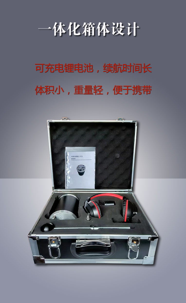 声磁同步定点仪(简易版)-详情 定点仪主机|充电器|耳机|说明书 政策条例 您必须遵守相关政策,严禁下载本站一切图片素材。 最终解释权归淄博特力电子技术有限公司所有 产品特点 1、经济实用,性价比高 2、探头主机一体化,尺寸小巧,更便携 3、内置大容量锂电池供电,更方便。 技术指标 声音信号通频段:中心频率 400Hz,带宽 200Hz。 信号增益:80dB。 定点精度:0.1m。 电池:7.4V 充电,内置大容量锂电池 充电器:输入 AC220V±10%,50Hz;标称输出 8.4v,DC1A 使用条件:温度:-10℃—40℃,湿度 5-90%RH,海拔<4500。