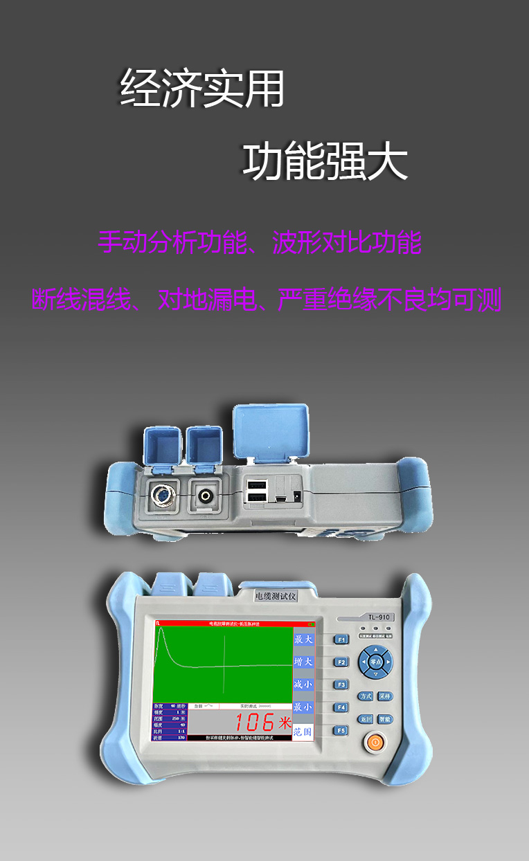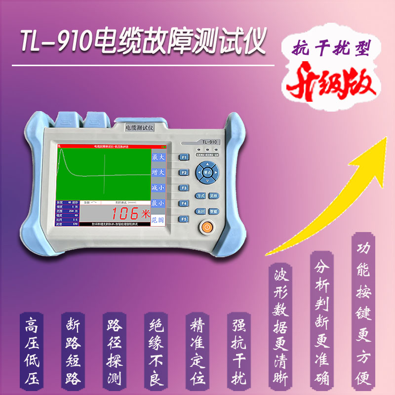 电缆故障测距仪(以下简称测距仪)采用先进的电子测试技术,具有低压脉冲反射,长度测试,漏电测试,路径测试等功能,适合于电缆故障的精确测距。 本仪表在上一代产品的基础上,优化了抗干扰电路设计和智能判断算法,具有超强抗干扰能力,能在高压线、电缆沟、配电箱位置测试使用。